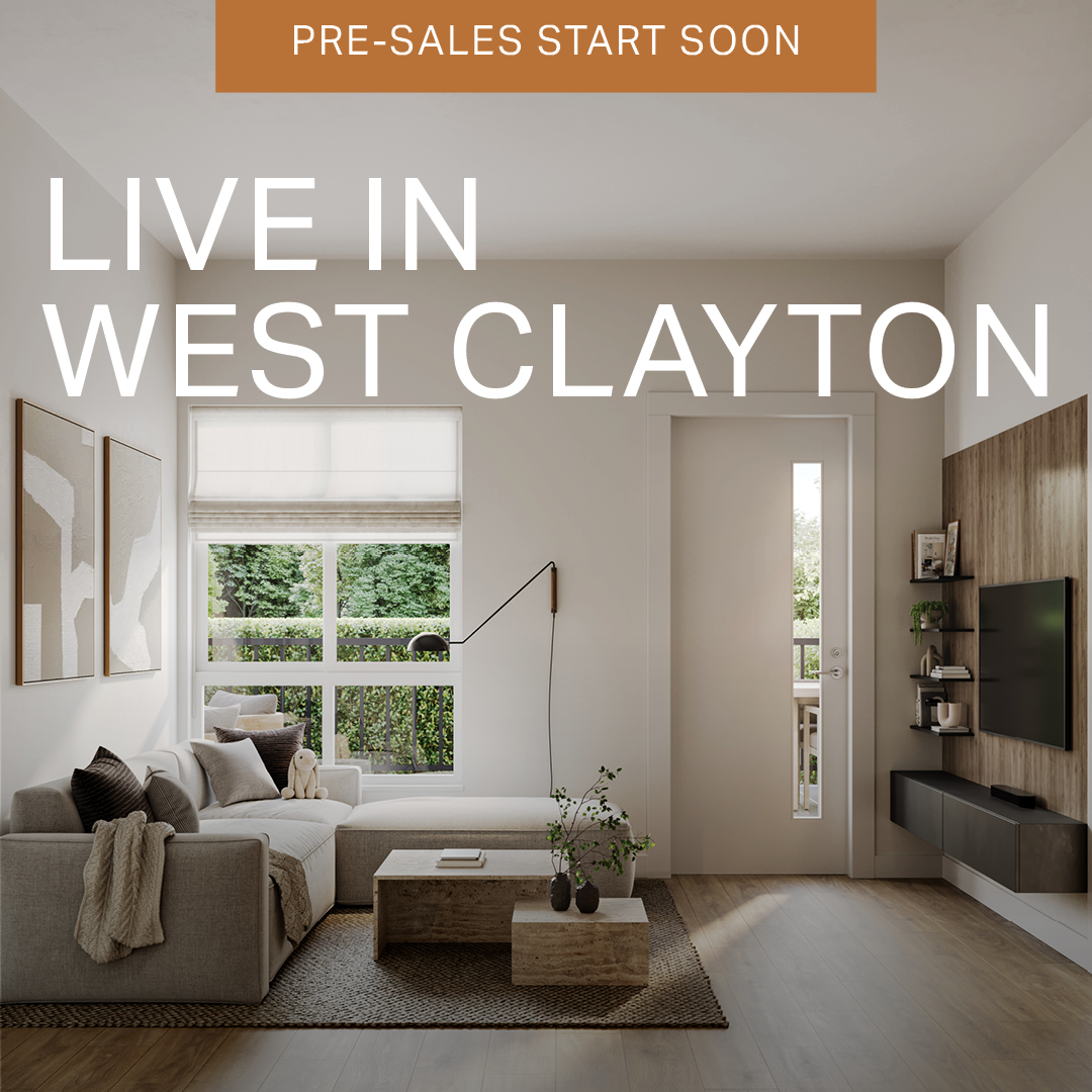The future is here — Clayton Crest is set to redefine West Clayton with modern homes, vibrant greenspaces, rooftop patios, extensive amenities, and walkable connections—all in a thoughtfully designed, master-planned neighbourhood.